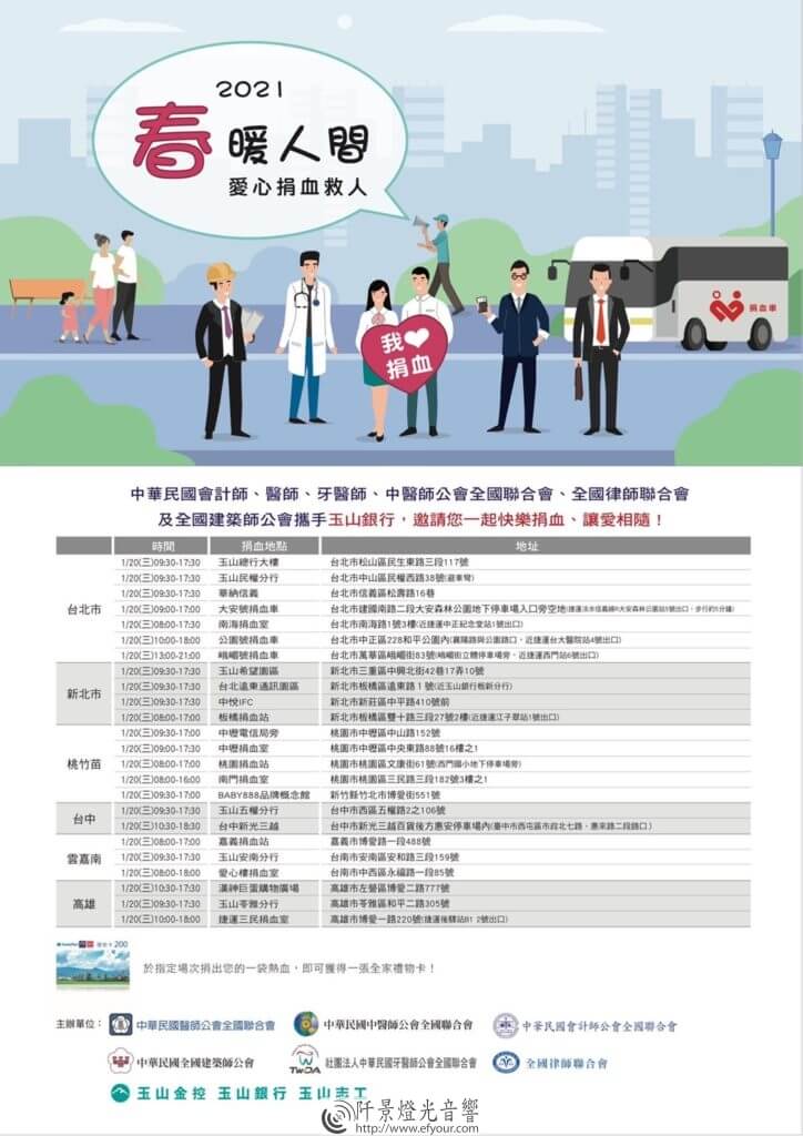 及全國建築師公會攜手玉山銀行,邀請您一起快樂捐血、讓愛相隨 !