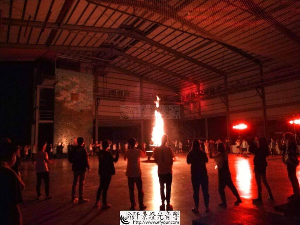 - 垂直噴煙機 (Upward Fogger): 這最適合「英雄登場」!在舞台前方配置,新人上台時瞬間噴出高達 3-5 米的白色煙柱,視覺效果極其囂張。