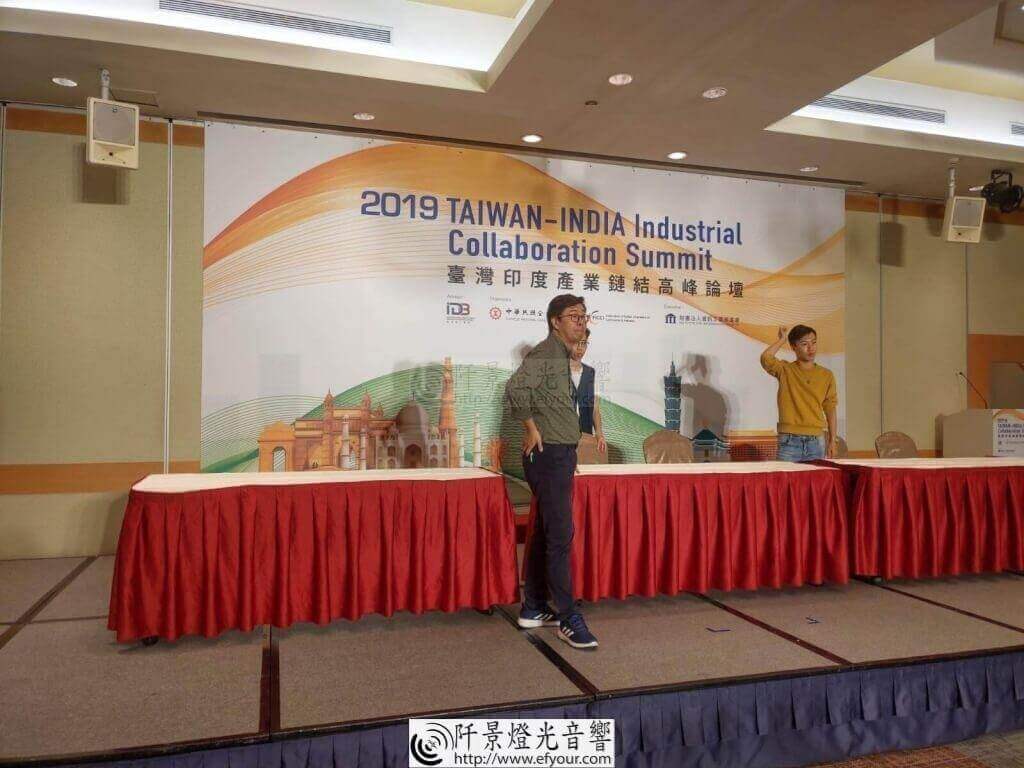 - 環境氛圍染色燈: 結合台灣與印度的國家代表色(或論壇主色),利用電腦燈進行會場牆面染色,營造高端商務氛圍。