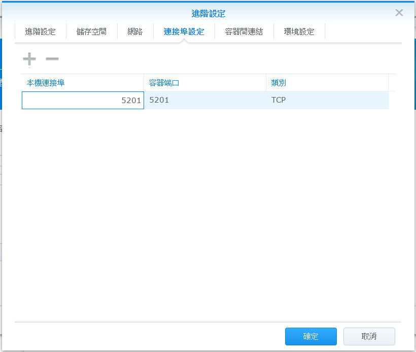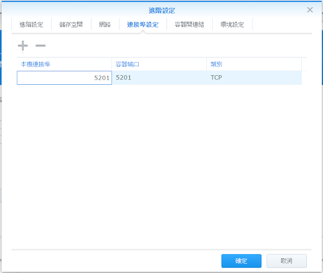 進階設定裡,切換到連接埠設定頁。在本機連接埠裡輸入5201