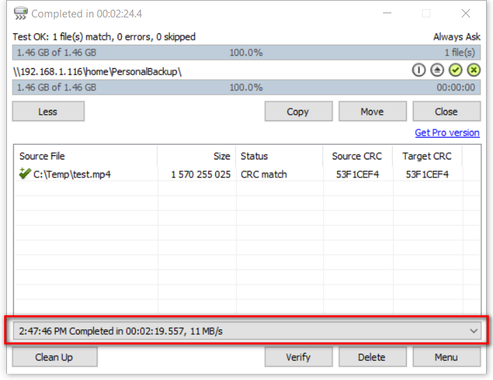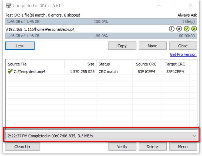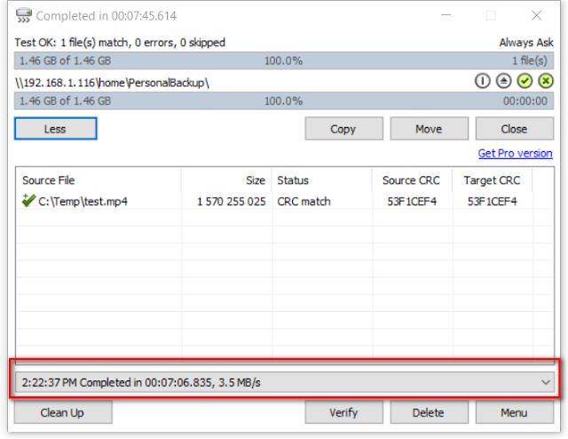 測試到NAS間的傳輸速度