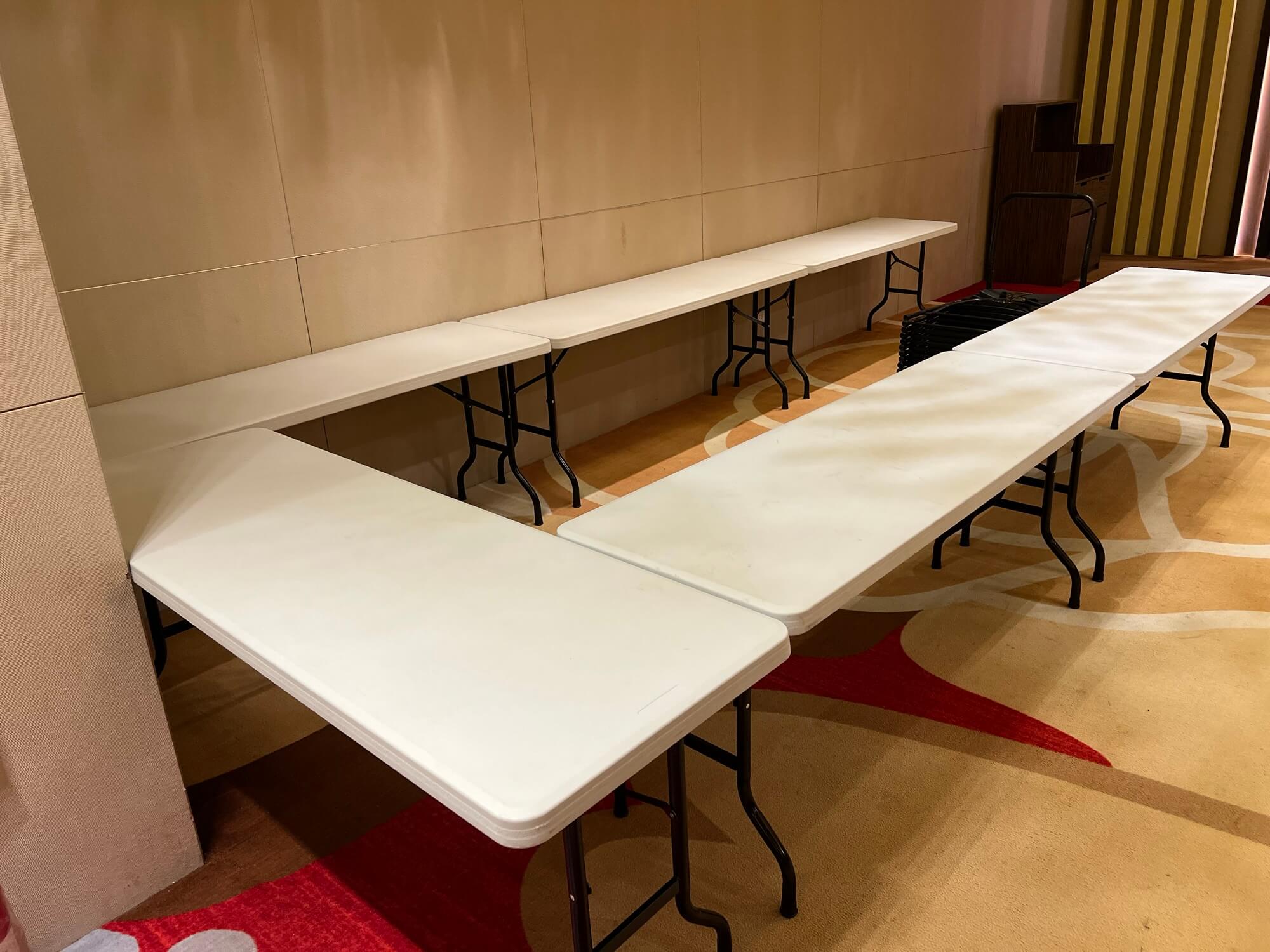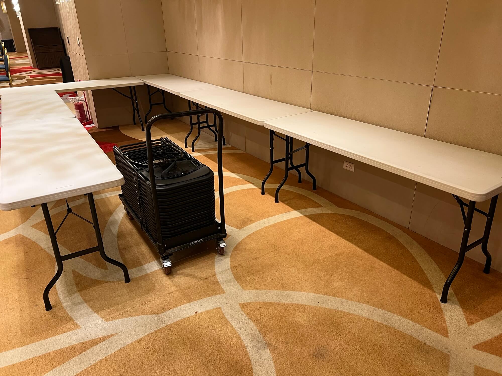 • 美觀與專業並存:即便只是休息區,整齊劃一的黑色或白色桌椅,能完美融入飯店原有的高質感裝潢,讓您的活動現場從裡到外都顯得專業到位。